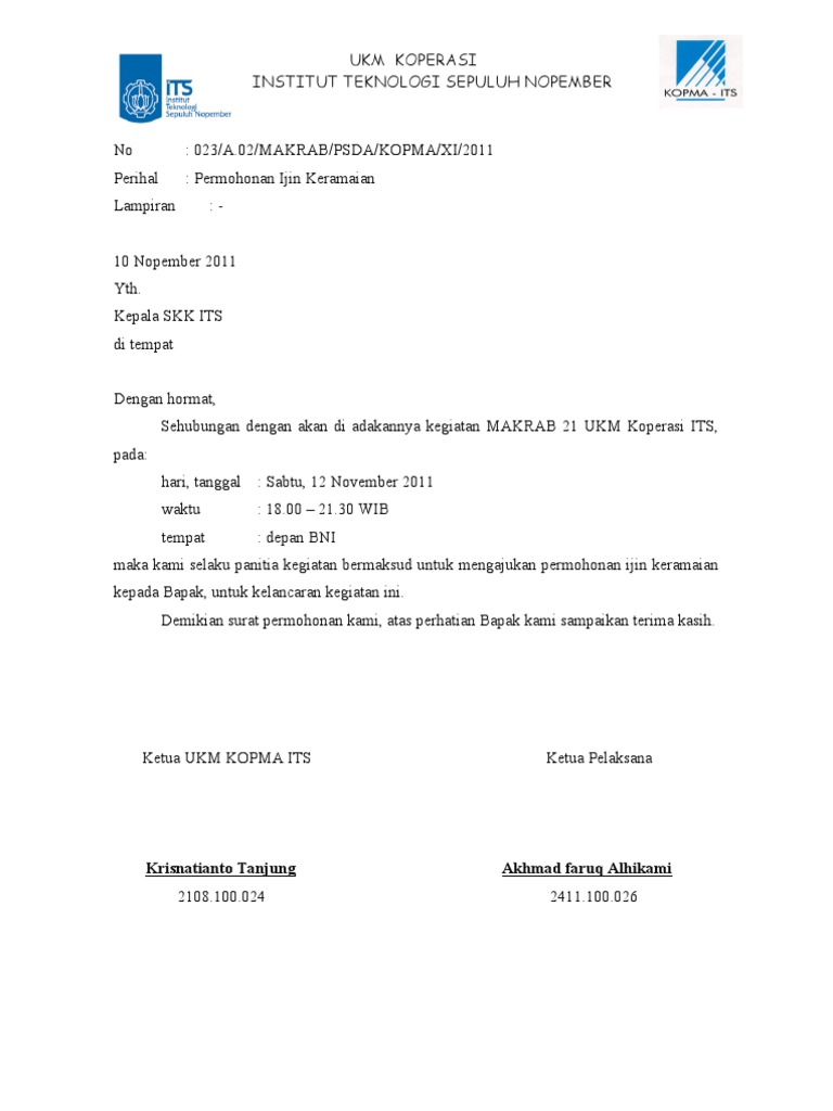 Download contoh surat pengajuan izin keramaian ke polsek 2019. Contoh surat izin mengadakan keramaian. Dari proses pengajuan, persetujuan hingga dicatat oleh tim hrd dapat memakan waktu beberapa hari. Secara umum fungsi dari surat izin adalah sebagai sarana pemberitahuan dan perizinan bahwa seseorang yang disebutkan dalam surat akan. Contoh surat permohonan izin keramaian.